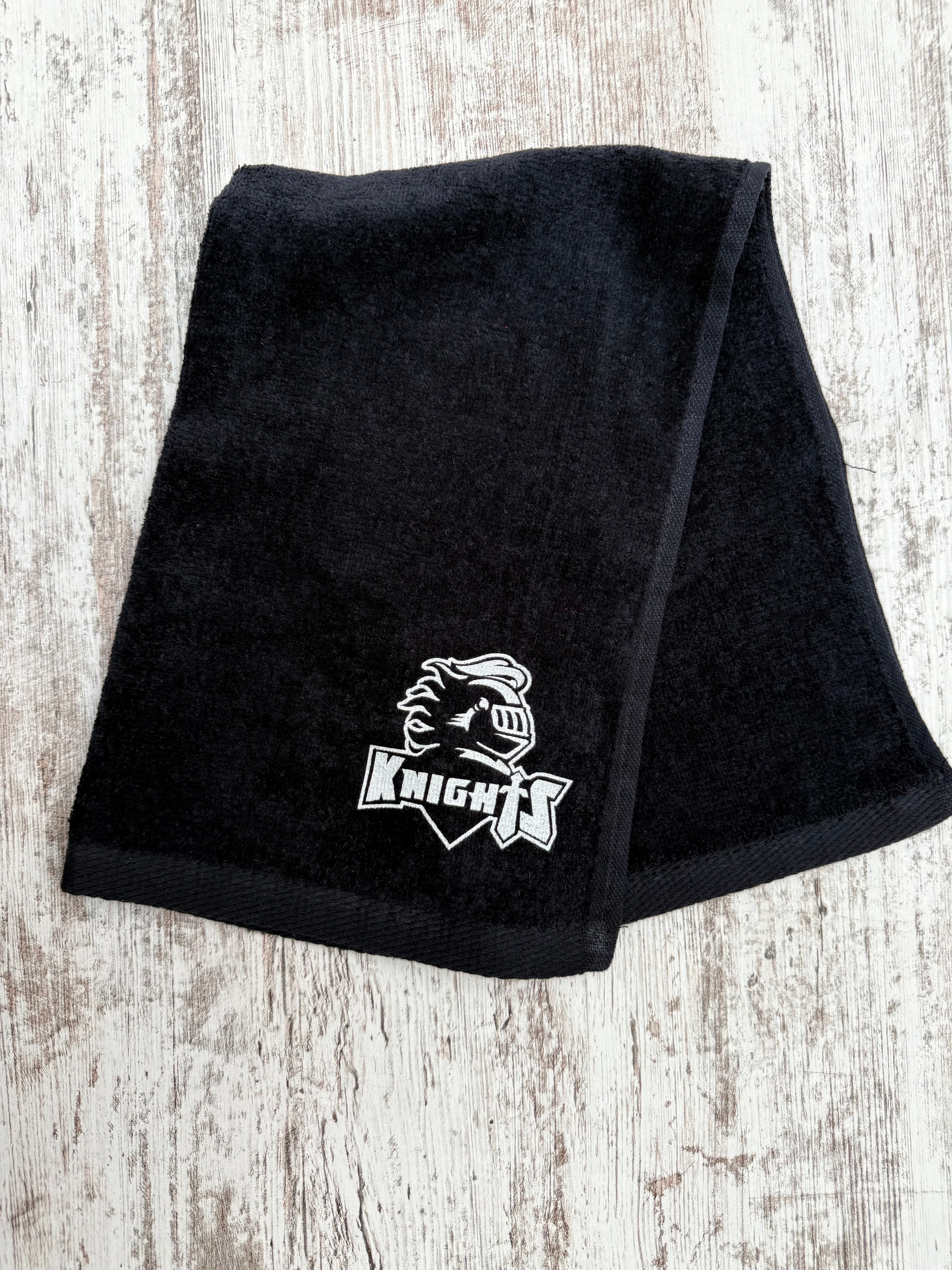 Fuel your team's spirit with the NHS Knights Rally Towel! Great for waving at games, this rally towel is a must-have for any fan. Made from high-quality material, it absorbs sweat and keeps you cool during intense moments. Show your support and cheer your team to victory with this essential accessory!