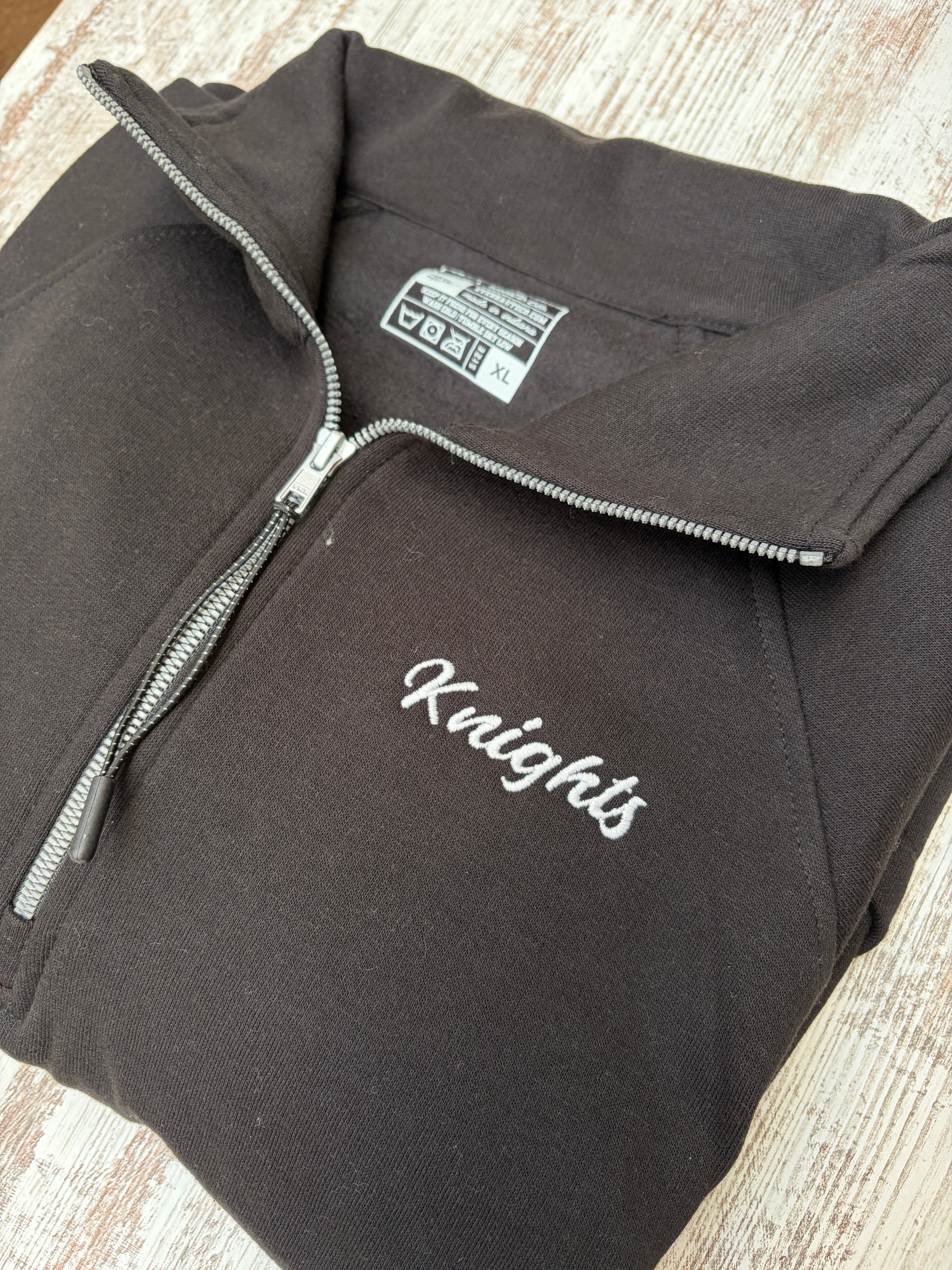 Show your Knight pride with this classic 1/2 zip pullover featuring embroidered team branding. Perfect for game day, casual outings, or layering through the seasons, this cozy sweater combines comfort with school spirit. Go Knights!