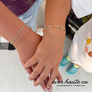 At EHC, we want you to LOVE your newest pieces of permanent jewelry and are confident in the quality of each piece when you purchase from us! All our permanent jewelry chains and connectors are covered 100% with our warranty against any tarnishing, as long as your have the jewelry still worn.